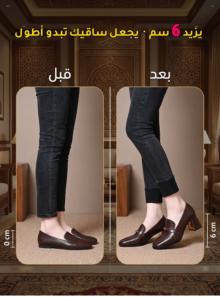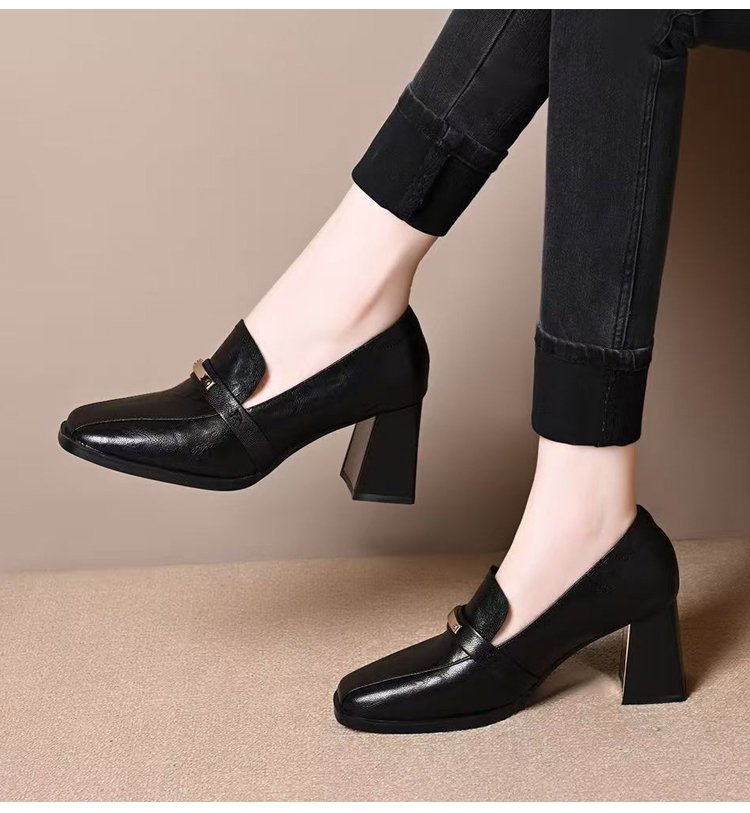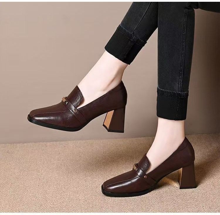 【نفس موديل المول】 حذاء نسائي بكعب عالٍ 6 سم من الجلد الناعم بمقدمة مربعة