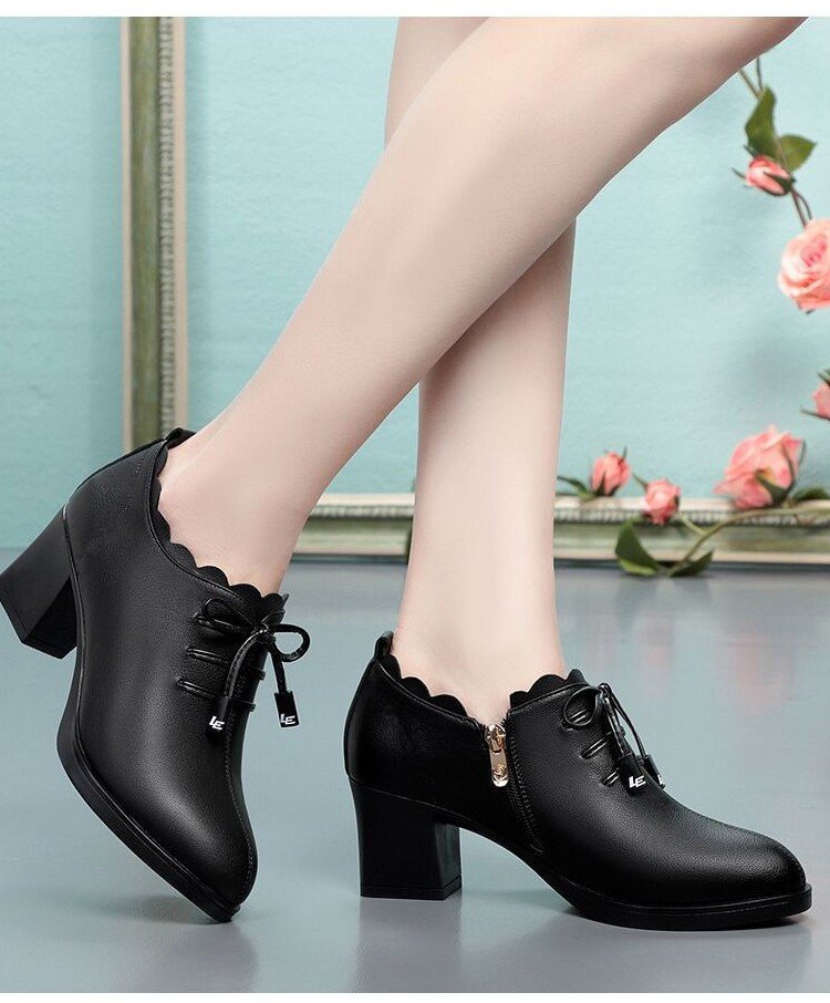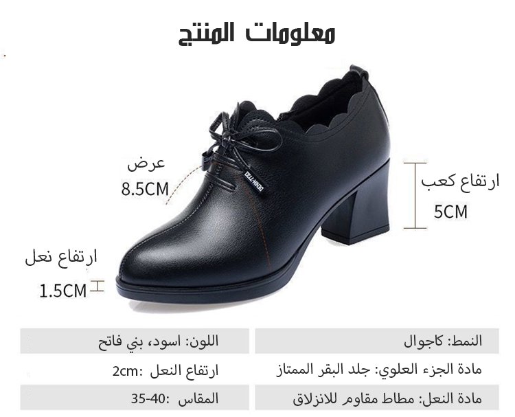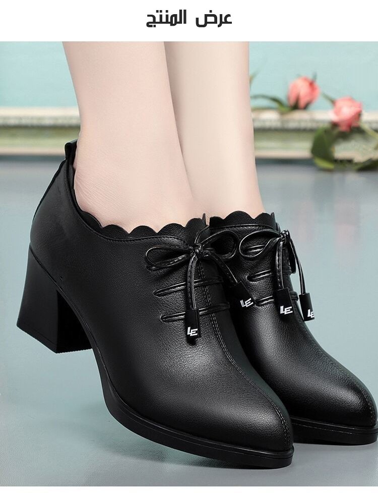حذاء جلدي بكعب مكعب للسيدات