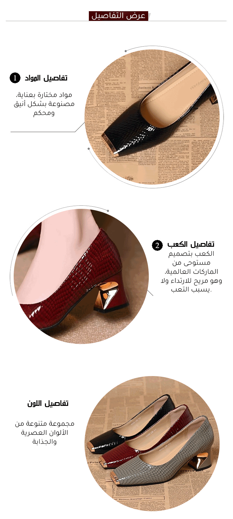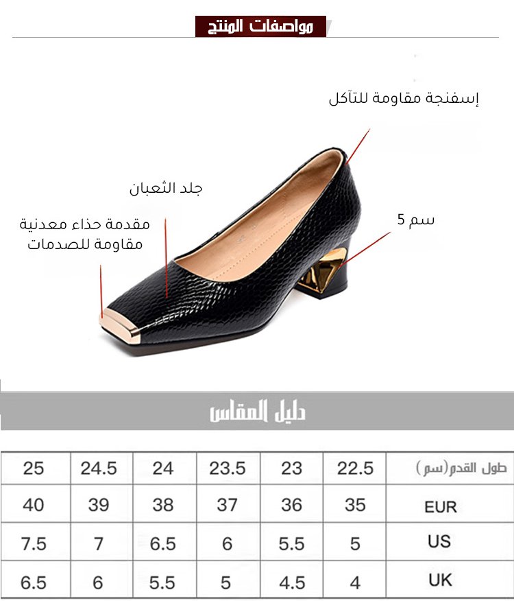 حذاء نسائي منخفض الرقبة مصنوع من الجلد الناعم مع مقدمة معدنية
